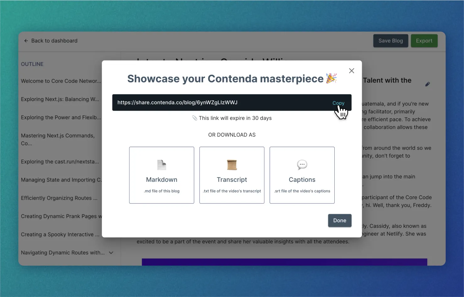 Developer advocates are the bridge between software companies and their developer users, often creating content to help educate and raise awareness in the community about particular features. Contenda makes it possible to take, for example, a video tutorial and turning it into a blog. This saves time and can even make it easier for a cross-functional team to collaborate.