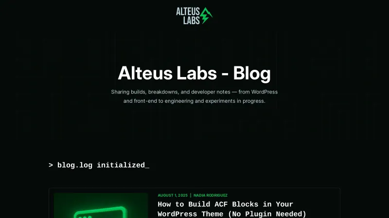 Alteus Labs Blog | Dev Notes, WordPress, Front-End, Engineering