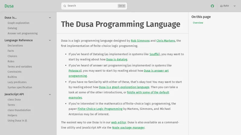 The Dusa Programming Language