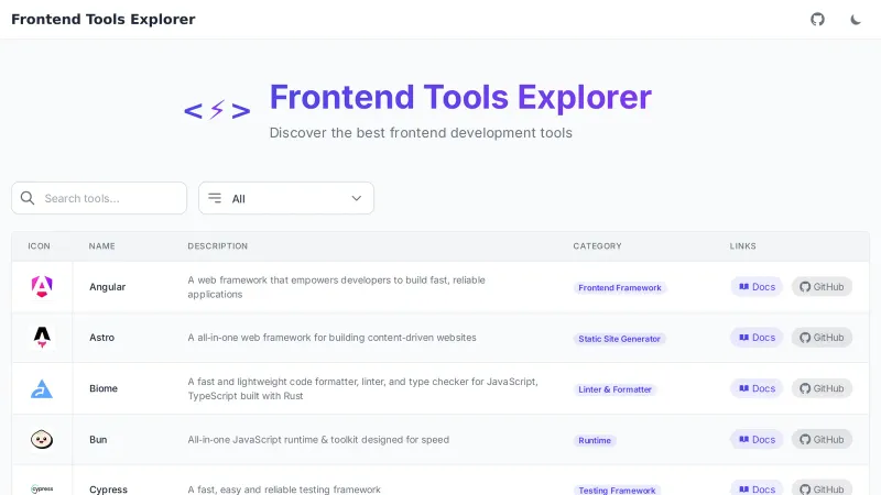 Frontend Tools Explorer